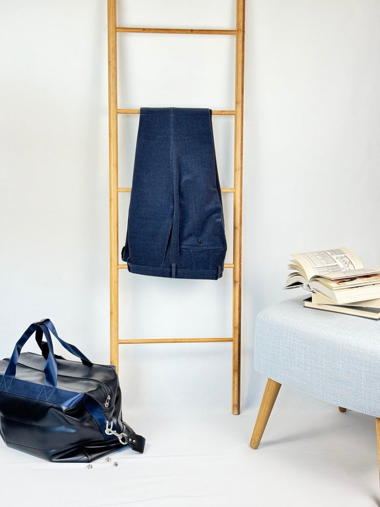 ✨ Открийте класическа елегантност в модерна интерпретация с нашия панталон от рипсено кадифе в тъмно син цвят дюс. Създаден за мъже, които ценят безупречната линия, висококачествените материи и усещането за комфорт през целия ден.