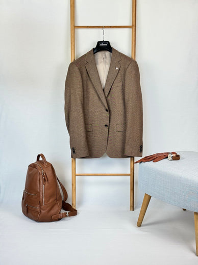 ✨ Сакото, което прави впечатление с финес, стил и качество. Нашето мъжко сако от кашмир и памук в елегантен кафяв цвят е създадено за мъже, които ценят лукса в детайлите и изисканата линия.